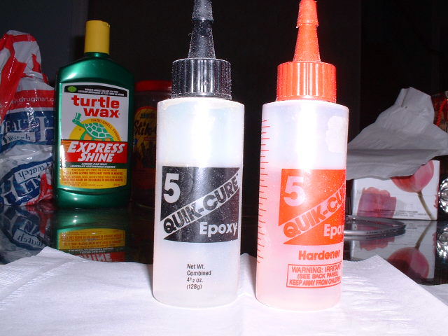 Crazy Glue (left bottle): It's useful for many applications. Gluing small pieces of resin and